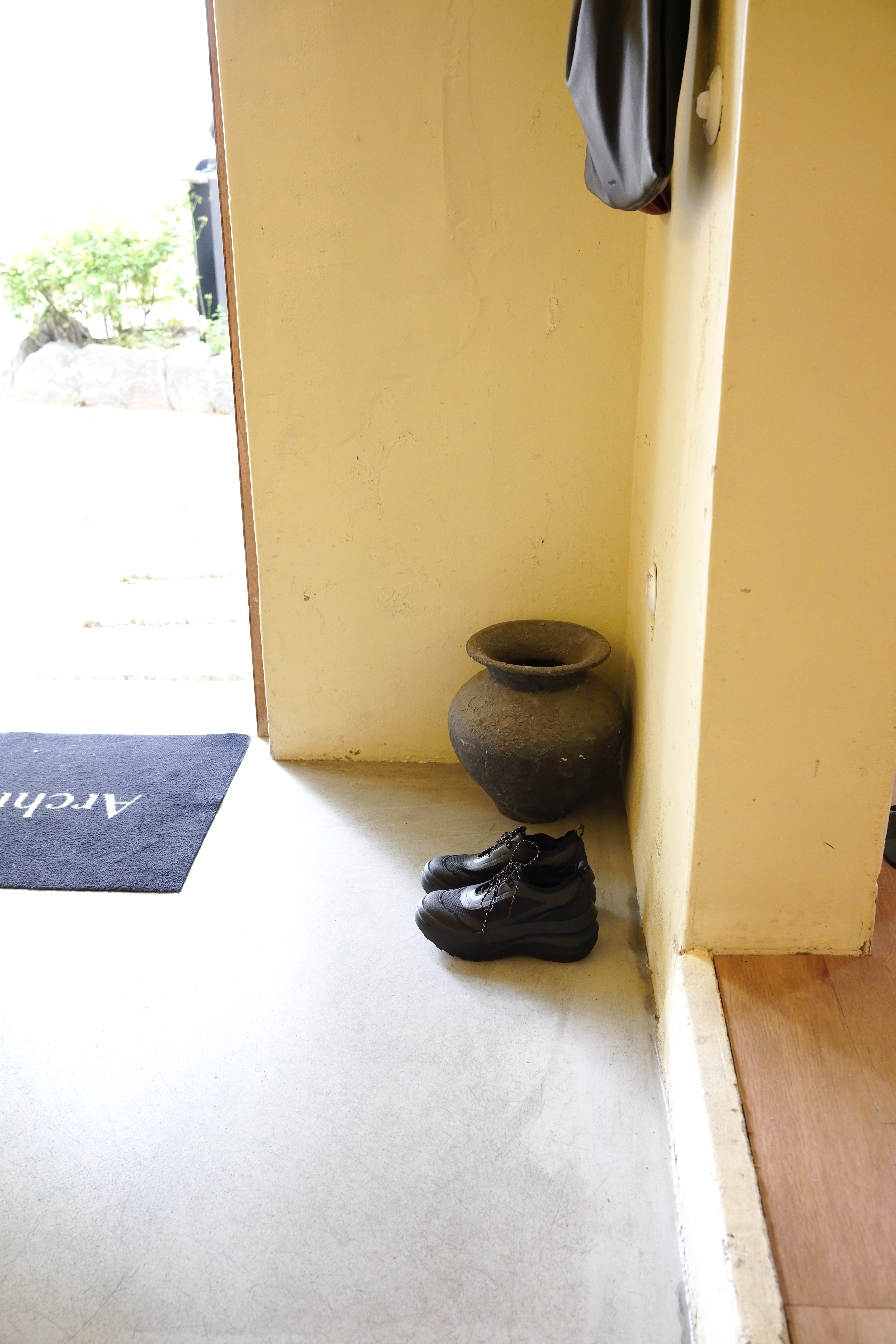 まるで自宅の玄関のようなドアをくぐると、そこはウッドを基調とした落ち着きのある空間。住宅だった頃の名残を残しつつ、それを生かしながらディスプレイを展開しています。まさに『Archivepkeがある生活』を直感的にイメージすることができる場所となっています。